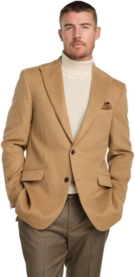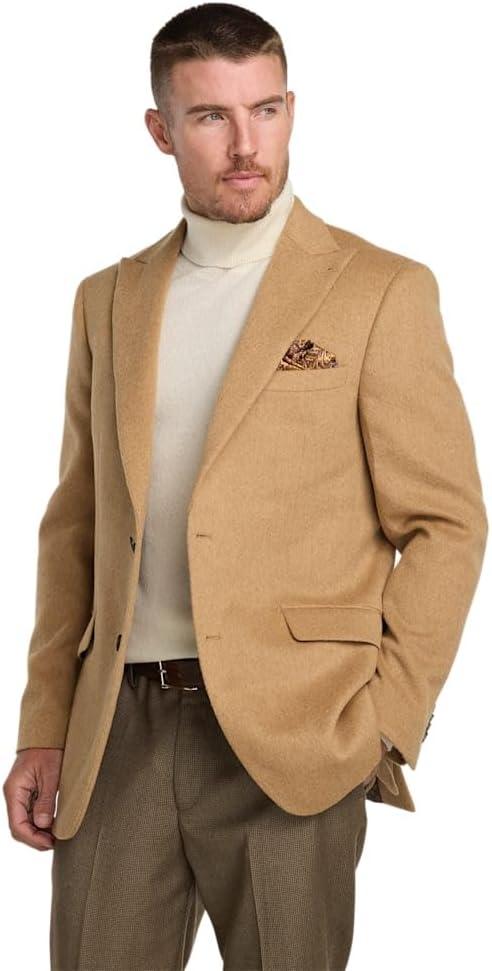 Camel Hair Dry Clean Only Two-button Front, Side Vents, Peak Lapel Comfort Stretch Armhole Fully Lined Imported