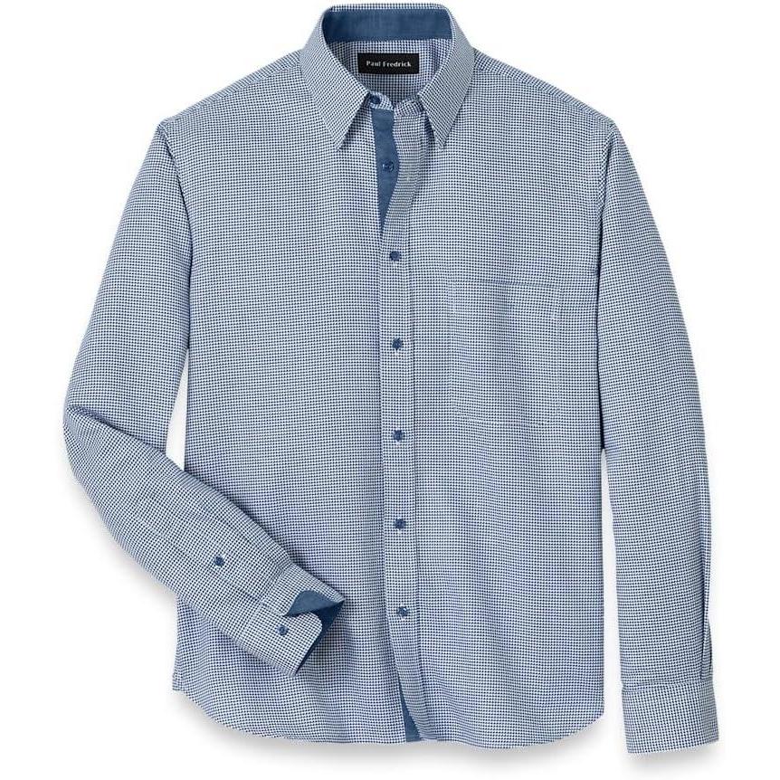 Paul Fredrick Men's Classic Fit Cotton Houndstooth Casual Shirt Blue 3xl Tall SFU010L