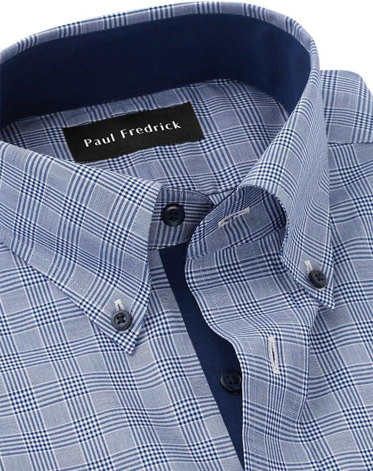 Paul Fredrick Men’s Classic Fit Non-Iron Cotton Plaid Dress Shirt(Sodalite)