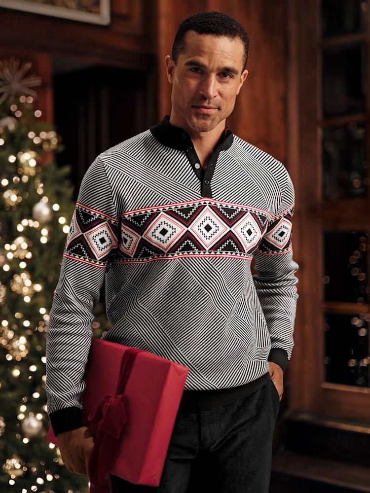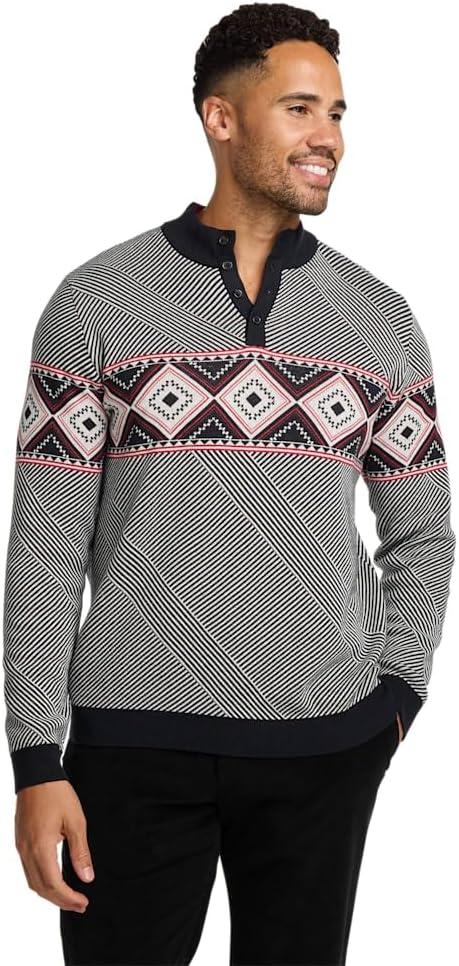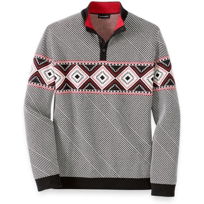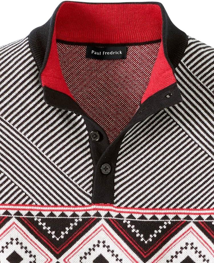 Paul Fredrick Men’s Cotton Button Front Fair Isle Shawl Collar Cardigan Sweater