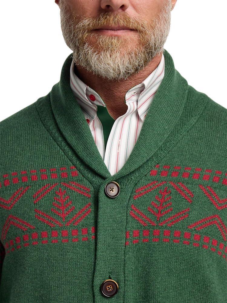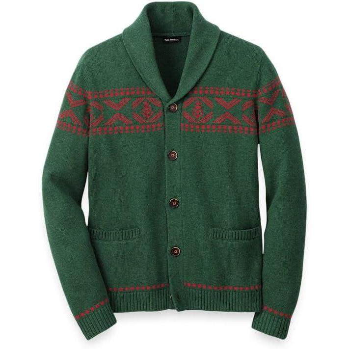 100% Cotton Turn Garment Inside Out, Machine Wash Cold, Use Non-chlorine Bleach Only, Lay Flat To Dry. Warm Iron When Needed Shawl Collar, Long Sleeve, Button Front Fully Fashioned For A Better Fit Two Rib Welt Pockets Ribbed Bottom And Cuffs Imported
