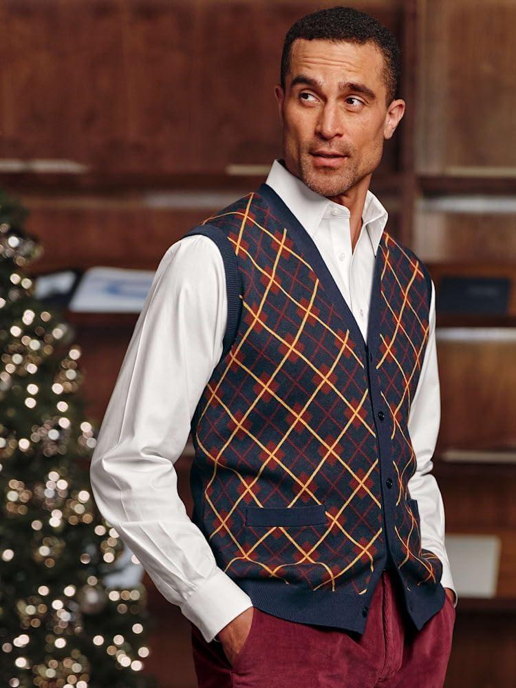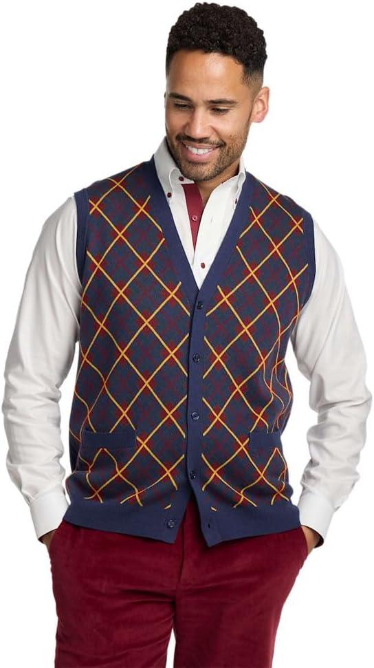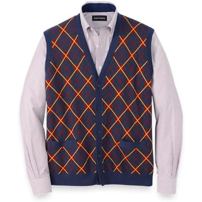 Paul Fredrick Men’s Cotton Button Front V-Neck Cardigan Vest