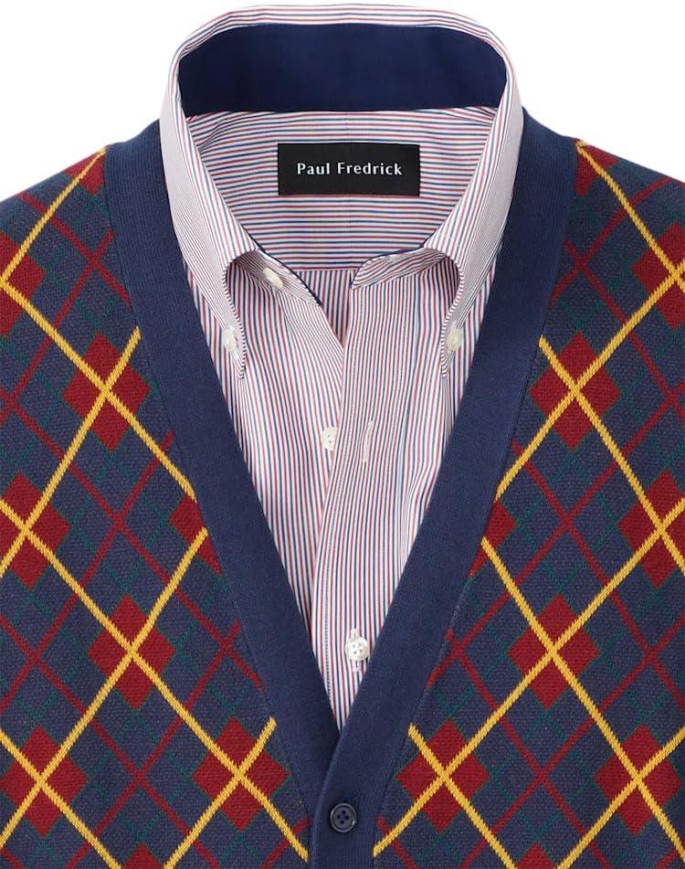 Paul Fredrick Men’s Cotton Notch Lapel Cardigan Sweater