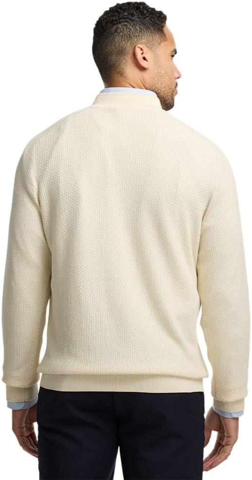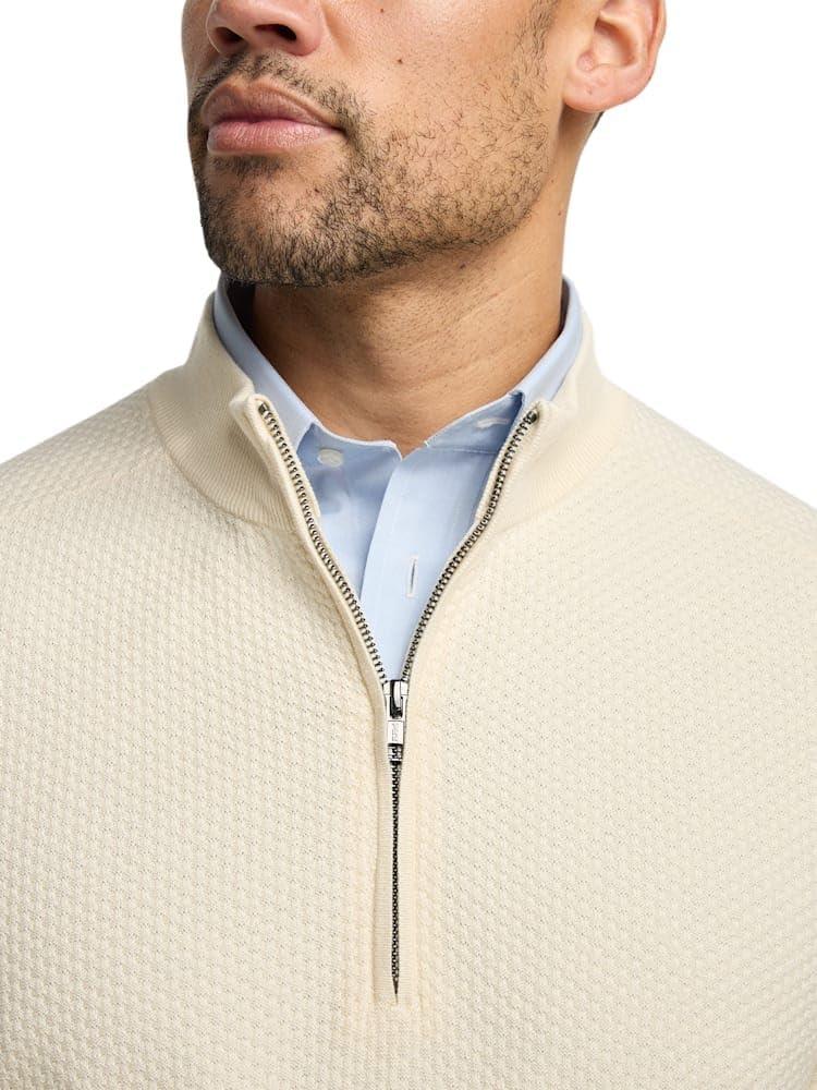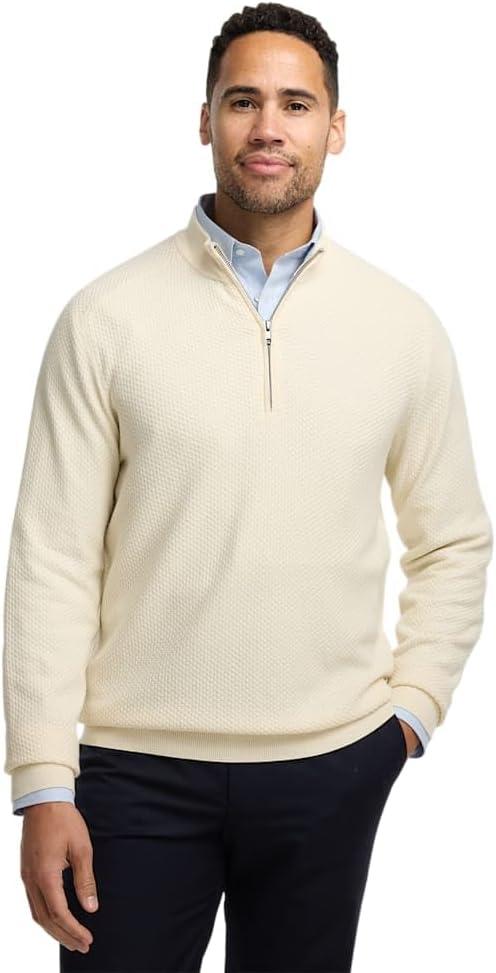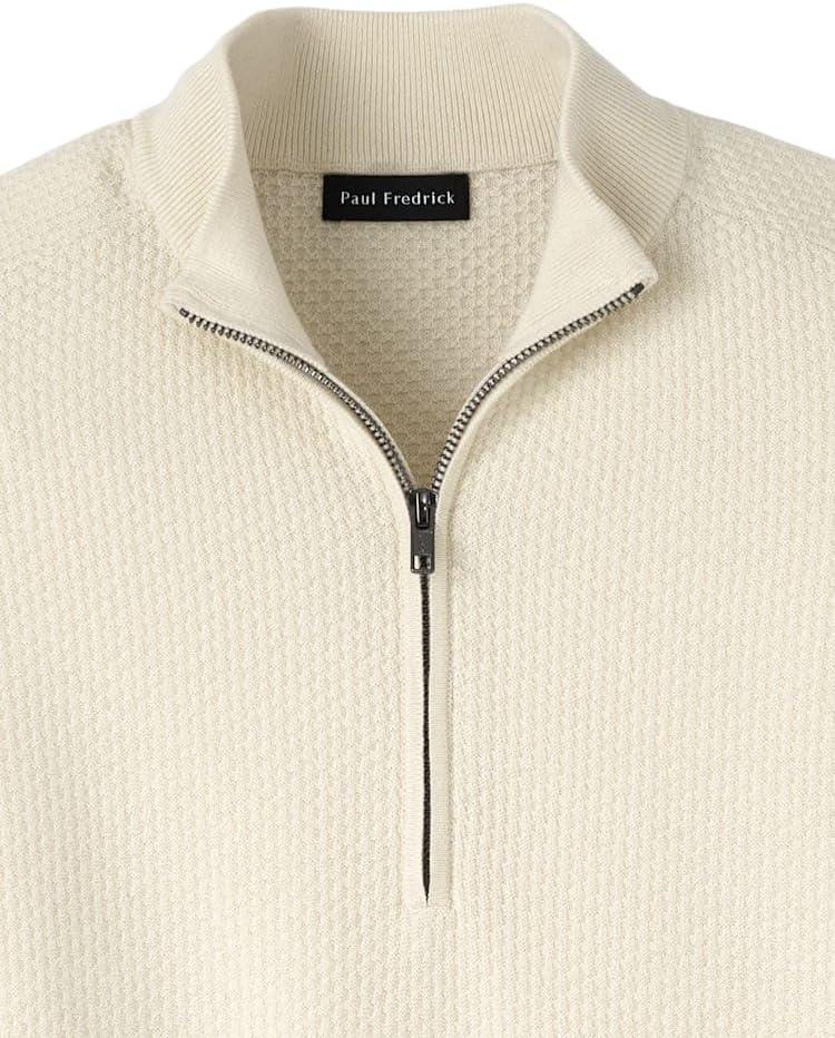 Paul Fredrick Men’s Silk Cotton Cashmere Quarter Zip Mock Neck Sweater(Ivory)