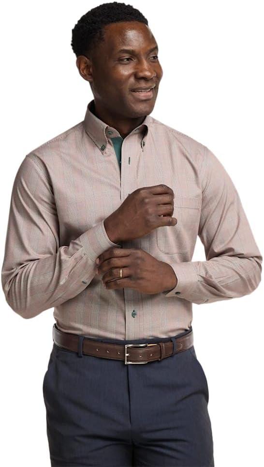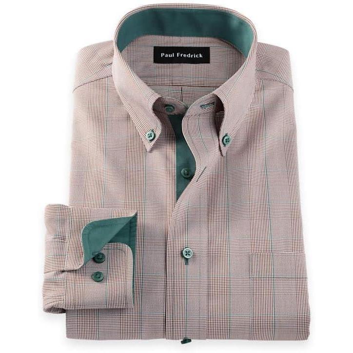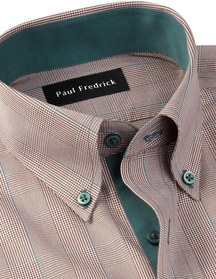 Paul Fredrick Men’s Tailored Fit Comfort Stretch Non-Iron Plaid Dress Shirt