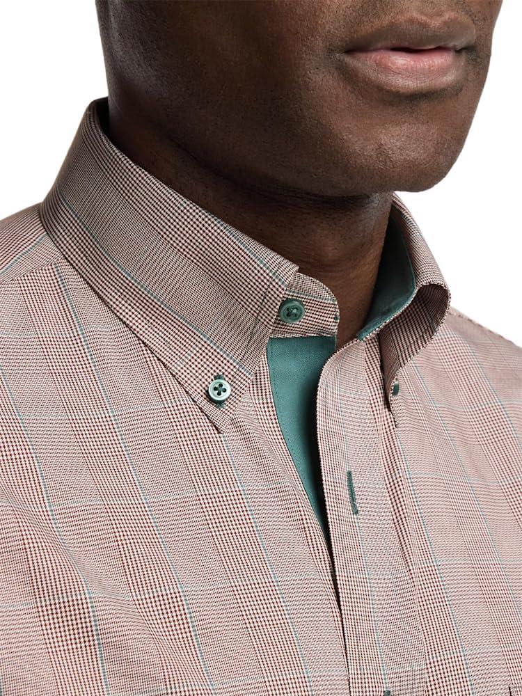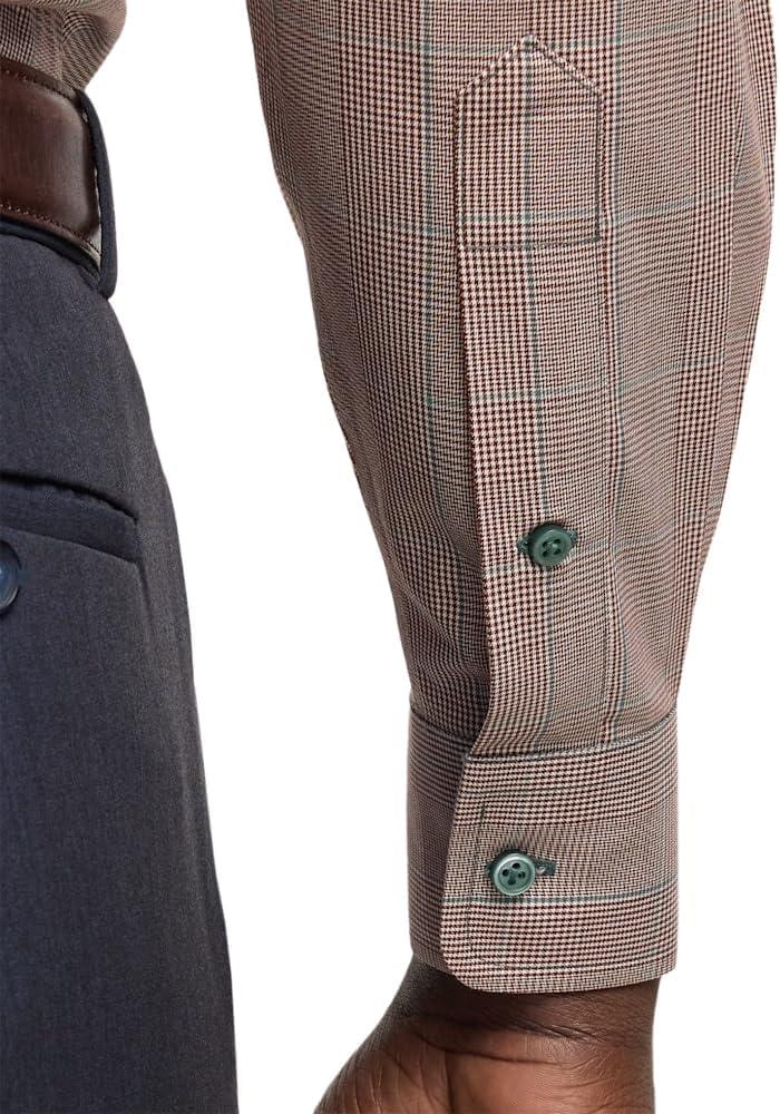 Paul Fredrick Men's Tailored Fit Comfort Stretch Non-Iron Plaid Dress Shirt