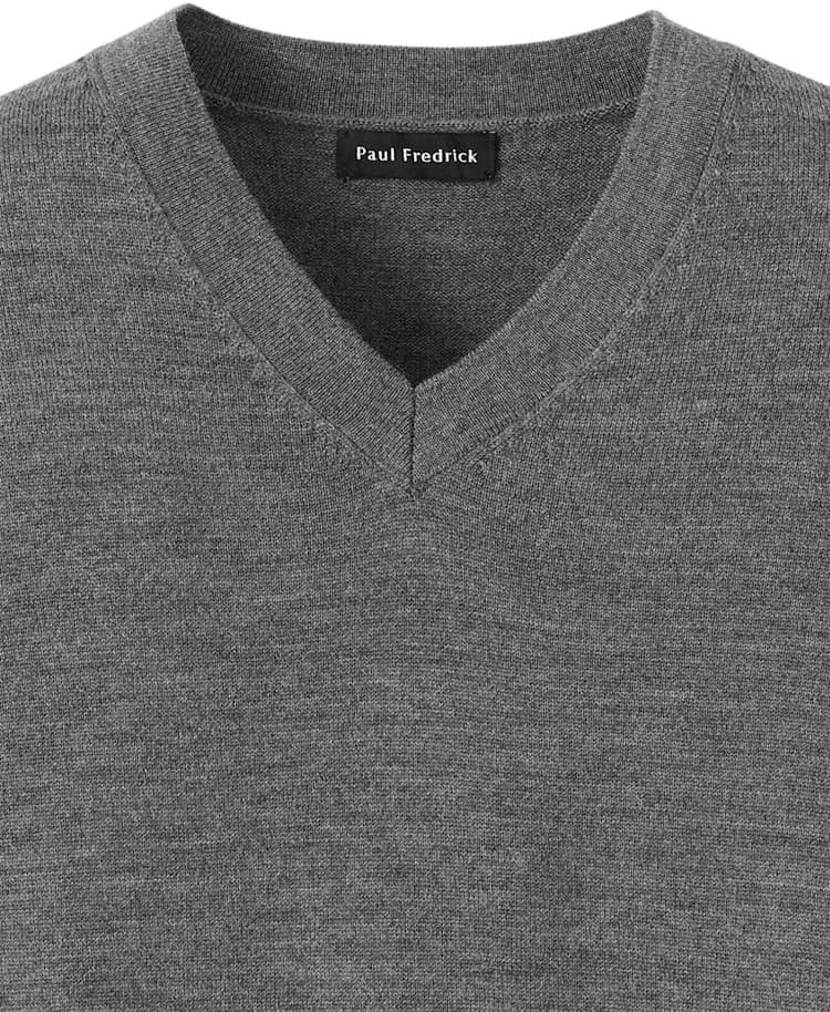 Paul Fredrick Men's Washable Merino Wool V-Neck Sweater(Grey)