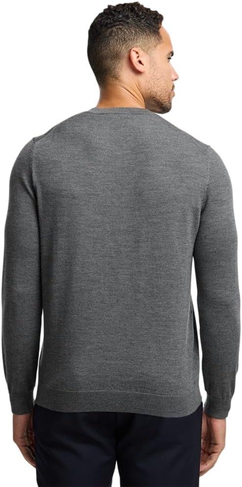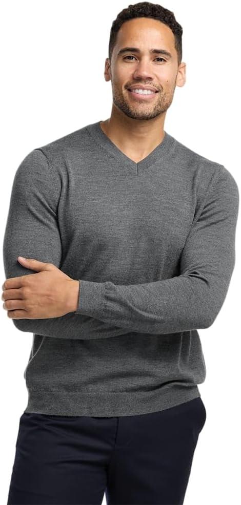 Paul Fredrick Men’s Washable Merino Wool V-Neck Sweater(Grey)