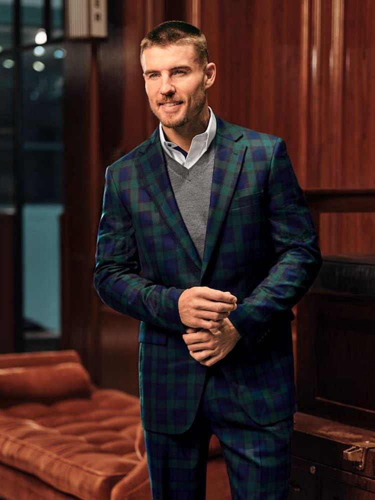 Wool Dry Clean Only Two-button Front, Side Vents, Notch Lapel Comfort Stretch Armhole Fully Lined With Straight Facing Two Lower Straight Flap Besom Pockets, Welt Breast Pocket, Four Inside Pockets Generous Cut That Flatters Most Body Types Imported
